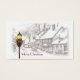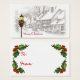 Vintage scène de Noël d'une ville à l'ancienne à l'heure de Noël sur ces étiquettes cadeaux. Il s'agit surtout d'une image en noir et blanc avec la seule couleur sur le réverbère et les décorations de Noël.