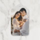 Les étiquettes élégantes personnalisées de mariage comprennent une véritable typographie de feuille d'or sur le devant avec un script moderne de calligraphie cardiaque "L'amour est doux", ainsi qu'un monogramme minimaliste élégant des prénoms de mariée et de mariée, date mariage, et "profiter d'un message de gâterie" qui peut être personnalisé. Le dos du tag comprend une photo du couple.