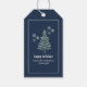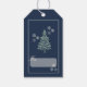 Étiquettes Cadeaux Arbre Persistant Bleu Marine – Lot de 10 – Collection Village Hivernal Charmant.