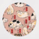 Étiquettes chats japonais Ukiyo-e Funny kitty