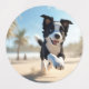 Marionnettes jouant sur la plage Eau bleue, plage dorée, dessin animé de chiot noir et blanc, le meilleur choix pour les amoureux de les chiens