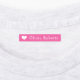 Étiquettes de vêtements mignons dans les tons roses avec un coeur de couleur blanc ou personnalisé et votre nom ou autre texte personnalisé. Vous pouvez modifier les couleurs empreinte de patte et arrière - plan à l'aide de l'outil de personnalisation.