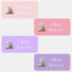 Add a touch of sweetness to school and daycare supplies with these personalized pink and lilac name labels featuring an adorable kitten with a backpack. Designed with four soft, coordinating shades, these clothes stickers help little ones recognize their items with ease. Durable, waterproof, and easy to apply to fabric, lunch boxes, books, and more — they’re a must-have for cat-loving kids heading back to school or nursery. A charming and practical gift idea for girls!