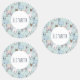 Étiquettes imperméables personnalisés avec un motif mignon avec lamas géantes. L'un est allongé, l'autre tient une fleur dans la bouche, et l'autre vous regarde de manière suspecte. Ces animaux ont beaucoup de charme. Placez-vous sur un arrière - plan à pois vert. Disposé sur le dessus est un cercle blanc avec votre texte à l'intérieur.