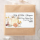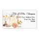Une élégante citrouille blanche est entourée d'un bouquet de fleurs sauvages jaune moutarde et bordeaux associées à des feuilles de graminées pampas terreuses et de feuillage sec. Étiquettes d'adresse de retour pour les invitations de mariage, de naissance et de douche de mariée. Parfait pour les événements de fin d'été et de récolte d'automne. L'artwork aquarelle a été créé par l'artiste et designer agréée internationalement, Audrey Jeanne Roberts. Copyright.