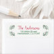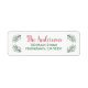 Branche de pin vert Retourner l'adresse Étiquettes Paisible Les Bouges de pin bordent l'arrière - plan enneigé de ces étiquettes.