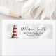 Ces étiquettes d'adresse de retour à thème nautique avec un motif de phare rouge et blanc sont la façon parfaite de finir des lettres ou des cartes à des amis et à la famille. Votre nom, adresse et choix de polices peuvent être facilement insérés à l'aide de l'outil de conception de Zazzle.