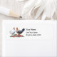 Deux poules portant des casquettes de fête se tiennent dans un tas de rubans sur ces étiquettes d'adresse de retour de poulet amusantes. Entrez simplement votre nom et votre adresse.