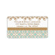 Elégant et beau carrelage marocain français inspiré des étiquettes d'adresse de retour avec une reproduction de coquillages bleu aqua et teinte turquoise et or géométrique design motif et doré hued français style baroque france fleurie. Nos autocollants d'adresse personnalisés haut de gamme et de luxe sont parfaits pour un ensemble de papeterie à thème marocain, arabe ou aladdin. Design © Chrissy H. Studios, LLC. Tous droits réservés