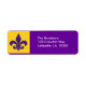 Les étiquettes d'adresse de retour personnalisables de fleurs de lis violet et or qui célèbrent la culture Louisiane.