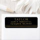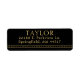 Les étiquettes d'adresse de retour minimes en noir et or, avec une police serif chic, offrent une atmosphère minimaliste.