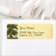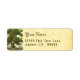 Étiquettes d'adresse de retour modifiables avec des lettres noires et des lettres de bloc dans l'art marron et vintage d'un chêne géant, en hauteur sur un arrière - plan faux parchemin.