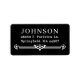 Simple blanc moderne sur les étiquettes d'adresse de retour noir avec une police serif classique au-dessus d'un défilement propre doublé pour une sensation chic et minimale.