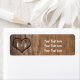 Étiquettes d'adresse rustiques en bois d'arbre sculpté en forme de cœur.