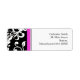 Étiquettes tourbillonnants noirs et blancs damassés de rose. Entièrement Personnalisable. Le papier à lettres mariage correspondant est disponible dans ce magasin.