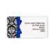 Étiquettes de adresse damassés noirs et blancs avec arc bleu. Entièrement Personnalisable. Le papier à lettres mariage correspondant est disponible dans ce magasin.