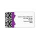 Étiquettes de adresse damassés noirs et blancs avec arc violet. Entièrement Personnalisable. Le papier à lettres mariage correspondant est disponible dans ce magasin.
