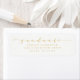 Ajoutez une touche personnalisée à vos enveloppes de graduation avec des étiquettes de adresse de graduation élégants. Les étiquettes de adresse disposent d'une police de script or stylisée, d'un arrière - plan blanc et d'espaces réservés pour votre nom et votre adresse. La couleur arrière - plan peut être changée en une couleur de votre choix à l'aide de l'outil Personnaliser.