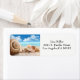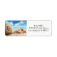 Étiquette de l'adresse de retour illustrée avec un plan de la plage et des coquillages. Customisez ce point et changez le texte à votre place.