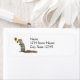 Un écureuil tient un tournesol jaune sur ces étiquettes de retour amusantes.