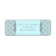 Élégant argenté et turquoise damas bleu petites étiquettes d'adresse de retour. Cette élégante étiquette d'adresse de retour turquoise en damas bleu est facilement customisée en cliquant simplement sur le bouton "Customisez-le !" pour commencer à ajouter vos détails, le style de police, la taille et la couleur de la police et le libellé. Veuillez noter que tous les étiquettes, cartes et modèles d'invitation que vous trouverez sur Zazzle sont des graphiques imprimés sans bijoux, arcs, surélevés, gaufrés, ou des pièces ou pièces ajoutées.