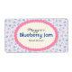 Ces étiquettes ont un motif floral bleu et violet, avec un front entièrement personnalisable.