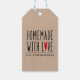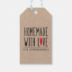 Une étiquette de cadeau moderne personnalisée "fabriquée à la main avec amour" sur un fond de couleur kraft. Rendez-la vôtre en ajoutant votre propre nom. Une jolie touche finale pour tous vos cadeaux faits maison. Conçue pour vous par Blackberry Boulevard.