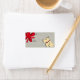 Les étiquettes cadeaux auto-collantes ont un motif de papier peint Art Déco gris chaud, arc rouge vif et notre chien préféré, Fuzzy le terrier à cheveux mousseux! Avec l'apparence du texte gravé, sont les étiquettes de champ "À" et "De".