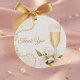 Ajoutez une touche finale luxueuse à vos faveurs de réception de mariage avec cette étiquette élégante. Avec un verre à champagne, une guirlande de perles, une étincelle dorée et des tons rose blush, elle complète parfaitement un thème Perles & Prosecco. Idéal pour les événements coquette, glamour féminin ou minimaliste moderne. Entièrement personnalisable !