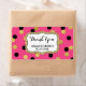 Mariage merci étiquettes en fuchsia rose chaud avec l'or et noir confetti points motif, s'il vous plaît noter que l'or est effet photographique seulement. Parfait pour les faveurs de mariage ou en tant que étiquettes de bouteille de vin mariage.