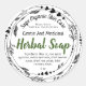 Étiquettes de savon avec une herbe, couronne noire et blanche entourant le texte.