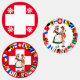 Étiquettes Drapeau suisse, edelweiss, cantons et danseurs