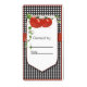 Ce étiquette de bocal à conserves de tomates est entouré de vignes et de feuilles avec un arrière - plan de damier noir et blanc. Faites votre prochain pot de sauce tomate être aussi joli que votre cuisine avec ce design.
