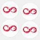 Infinity symbole of continuous stream of red pouring into glass glass glass on white background.