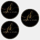 Business Monogramme Logo Black Gold Waterproof Étiquettes. Elégant étiquette de produit imperméable d'entreprise avec logo monogramme initiales dans un script de calligraphie sophistiqué avec des swashes et votre texte personnalisé dans votre choix de toutes les couleurs (montré en or sur noir). MODIFICATIONS : Modifiez le style de police de texte, la couleur, la taille, l'espacement et le placement ou la couleur du cadre arrière - plan et circulaire dans EDIT pour coordonner avec votre marque. ASSISTANCE : Pour obtenir de l'aide sur la modification ou la personnalisation de la conception ou pour coordonner des éléments, contactez le concepteur AVANT LA COMMANDE via l'onglet MESSAGE Conversation Zazzle ou envoyez un courriel à makeitaboutyoustore@gmail.com.