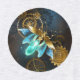 Luciole à vapeur avec ailes bleues transparentes et ampoule verte sur arrière - plan usé, marron, texturé. Style Steampunk.