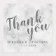 Script moderne Mariage Favor Merci Étiquettes avec le titre "Merci" en gris police de script moderne avec nom et date dans la police sans serif moderne sur l'arrière - plan en marbre blanc.