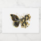 Or flower butterfly with black jewelry orchid, decorated with gold leaves on white background.