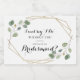 Ce étiquette de vin mousseux de calligraphie géométrique dorée est parfait pour un mariage rustique. Le design présente des branches d'eucalyptus vert et botanique dessinées à la main et des feuilles ornant un cadre élégant. Changez le libellé pour demander à tous les membres de votre parti.