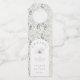 Cette élégante suite de mariage présente des motifs délicats de fleurs et de feuillage dans un schéma de couleurs bleu poussiéreux et or pour un thème de mariage cohérent et époustouflant. L'étiquette de suspension de bouteille coordonnée présentée ici présente un doux motif floral et un cadre d'arche tendance ajoutant une touche de romance et de sophistication à l'apparence générale. Ajoutez votre message personnel, vos noms et la date de votre mariage en utilisant le modèle fourni. Recherchez ID1045 pour voir d'autres produits de cet ensemble de conception de mariage.