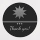 Étiquette ronde étanche noire avec texte argenté au look professionnel. Le design présente 3 sphères argentées sur le devant et la possibilité de le personnaliser. Ajoutez votre logo ou photo et un message de remerciement ou personnalisé. Parfait pour les entrepreneurs et les entreprises pour une utilisation sur l'emballage et l'expédition. Également idéal pour un usage personnel avec une photo.