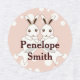 Le design du produit est composé de jumeaux lapins avec un ruban blanc cassé et des pois. Ce dessin animé animal adorable fait des étiquettes de vêtements mignons et uniques avec un texte personnalisé pour les enfants.