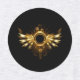 Shiny mechanical wings, with gears and brass round banner. Steampunk