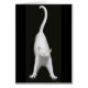 Conception originale de beaux-arts d'un chat blanc de étirage par le concepteur/illustrateur Carolyn McFann du studio de ronronnement de deux chats sur une carte de voeux personnalisable pour des amoureux de les chats.
