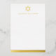 Cartes pour notes de papeterie plat et vierge avec un simple papier d'aluminium Star of David avec le nom ci-dessous dans une police masculine. Au fond, il y a une véritable bordure en feuille. Choisissez entre l'or rose, l'or et la feuille de couleur argentée.