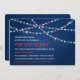 Cette invitation patriotique est cool pour un 4 juillet, un Memorial Day ou une fête du Travail. Le design est cool avec des étoiles rouges, blanches et bleues sur les lampes à cordes. L'arrière - plan est un bleu foncé texturé. Quel invitation amusant pour vos invités à recevoir dans le courrier!