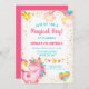 Une invitation tendance à l'anniversaire de licorne pour une fille. Ce design amusant est doté d'une licorne aquarelle, arc-en-ciel et coeur. Il y a aussi une fausse bordure d'étoile d'or pour une touche magique.