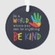 Un design puissant et tendance de typographie motivationnelle avec la citation "Dans un monde où vous pouvez être n'importe quoi, Be Kind" en couleurs arc-en-ciel avec une illustration manuelle de puzzle multicolore.