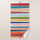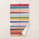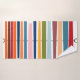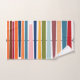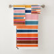Cet ensemble de serviettes a un design moderne du milieu du siècle de lignes horizontales de couleur sur une ligne verticale noire avec des cercles.