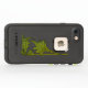 Des formes de feuilles vertes forment un angle droit dans le coin inférieur droit. Cela rappelle le travail du fer forgé.